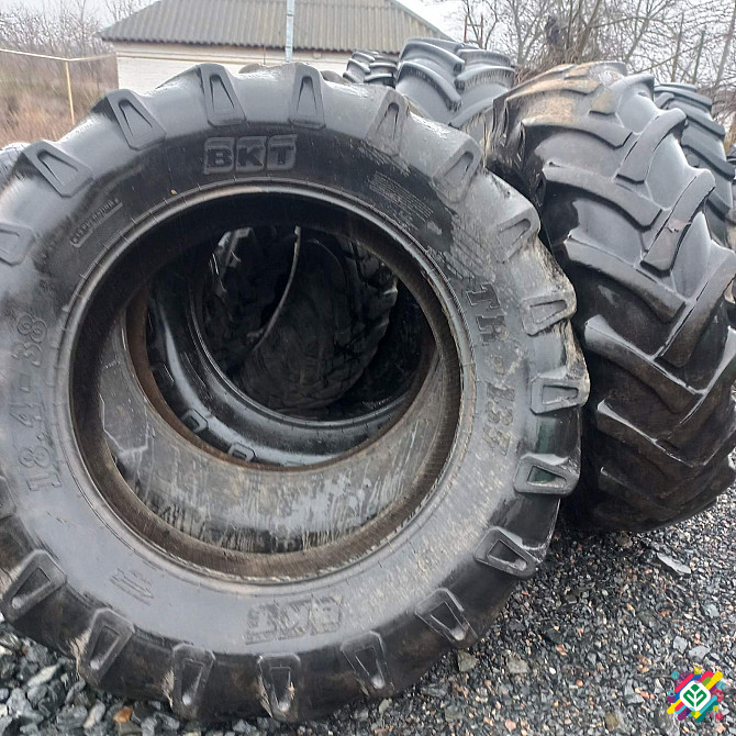 Шина для трактора BKT 18.4-R38 Технічні характеристики: - Розмір: 18.4-R38 - Кількість в наявності: 4 шт. - Встановлюється на: трактор, погрузчик - Призначення: сільськогосподарська і спецтехніка - Конструкція: радіальна - Типорозмір: 480/80/38 - Країна-виробник: Індія - Стан: без ремонту Умови оп...