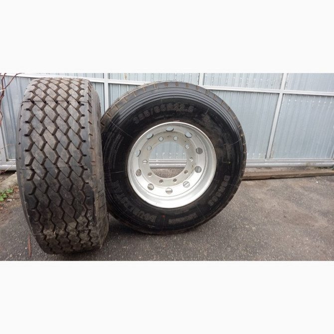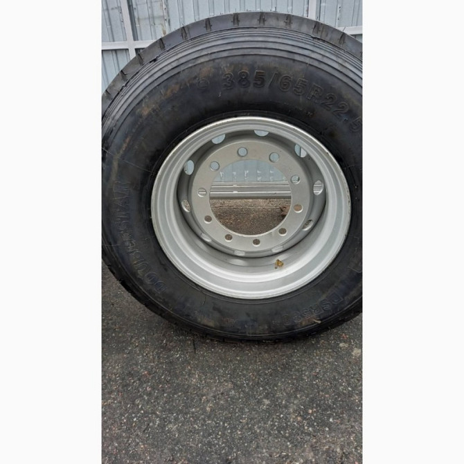 Колесо в зборі для причіпа - шина 385/65-22,5 20PR Doublestar DSR588 TL, обладнана диском з барабанними гальмами 11,75-22,5. Наявність 12 штук. Технічні характеристики: - Розмір шини: 385/65-22,5 - Індекс навантаження: 20PR - Модель шини: Doublestar DSR588 TL - Диск з барабанними гальмами: 11,75-22...
