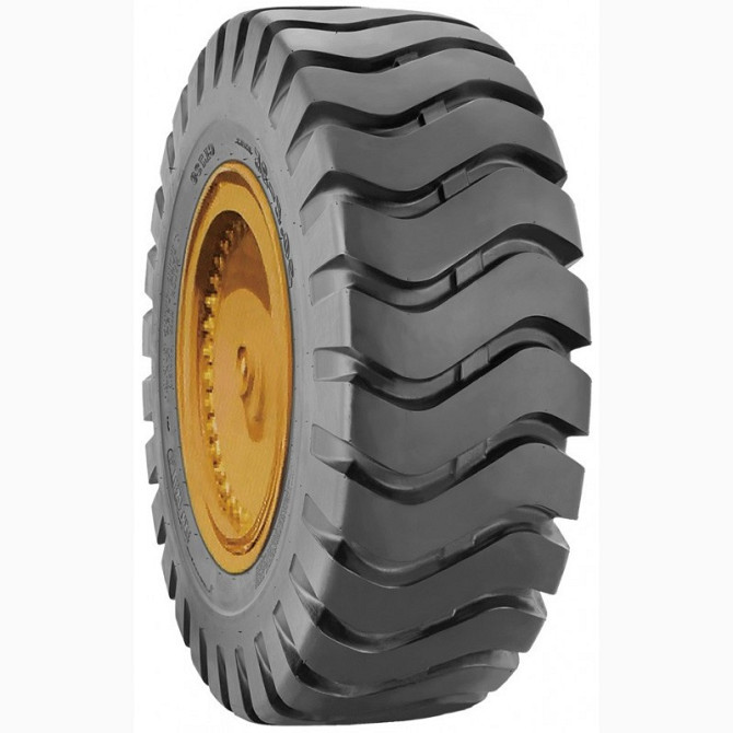 Кар'єрна шина призначена для встановлення на КРАНИ та ПОГРУЗЧИКИ. Благодаря рисунку протектора "хвиля", покришка ефективно витримує знос і має властивість самоочищення від ґрунту та бруду. Конструкція виробу поліпшує керованість з висунутою стрілою в навантаженому стані. Підсилений каркас покришки з...