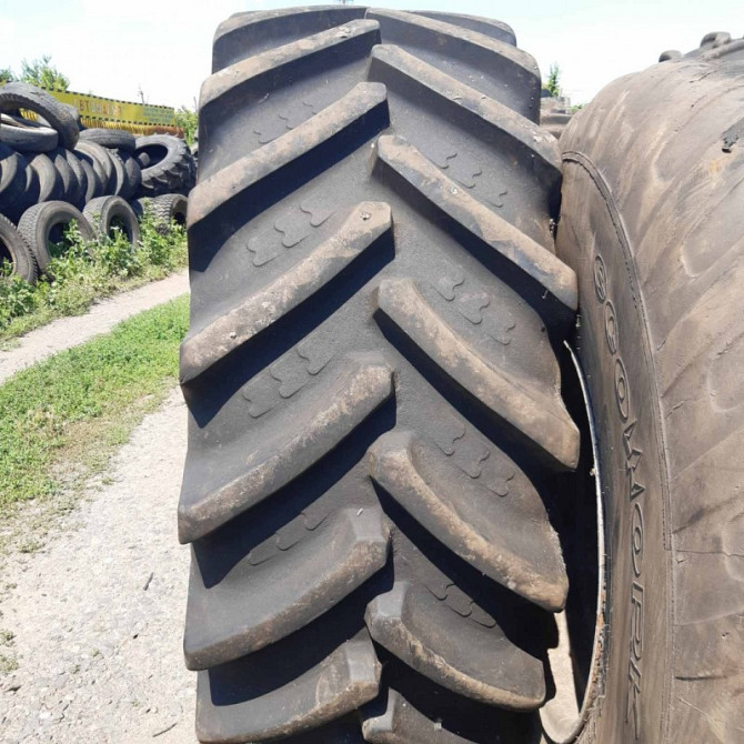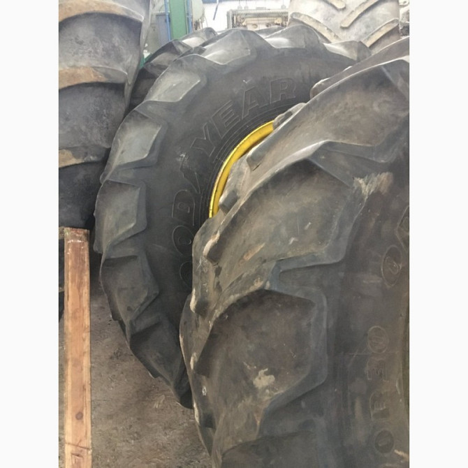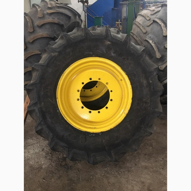 Колеса для трактора John Deere 710/70R42 та 600/70R30 (з шинами Firestone та Goodyear відповідно) разом із оригінальними дисками в наявності. Кожен комплект включає шину, диск та необхідну кількість шпилок для установки. Технічні характеристики: - Колесо 710/70R42: шина Firestone, оригінальний JD д...