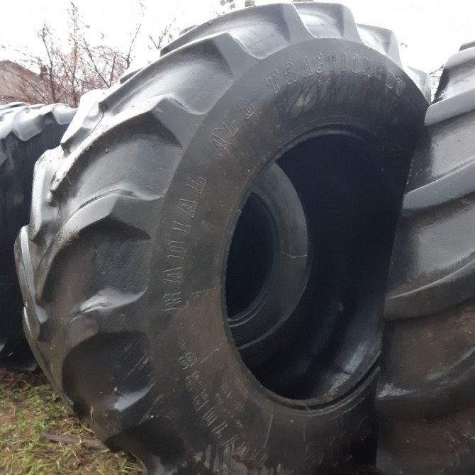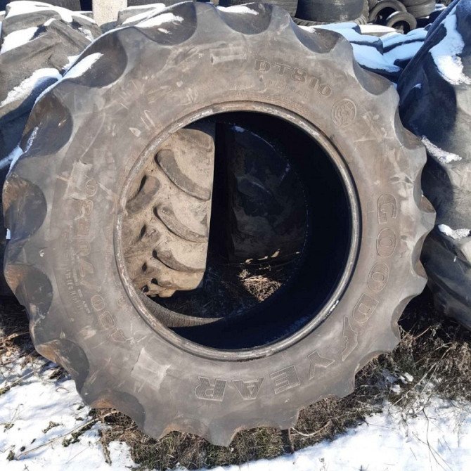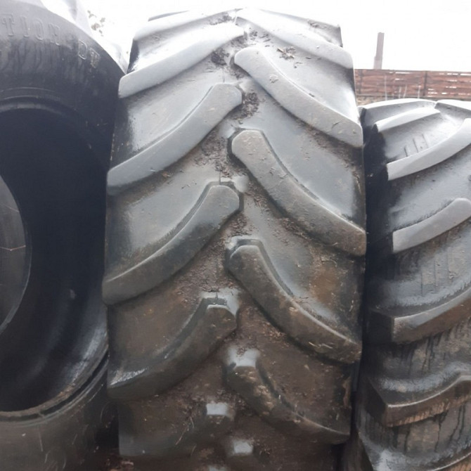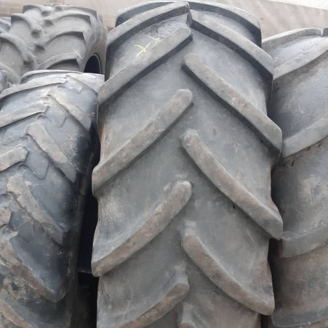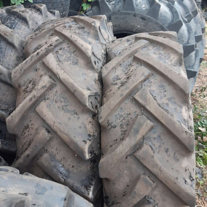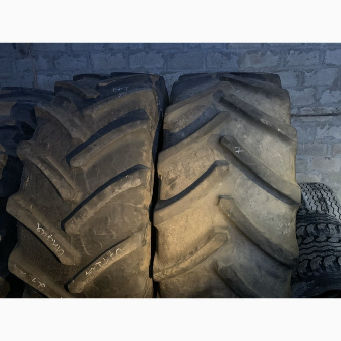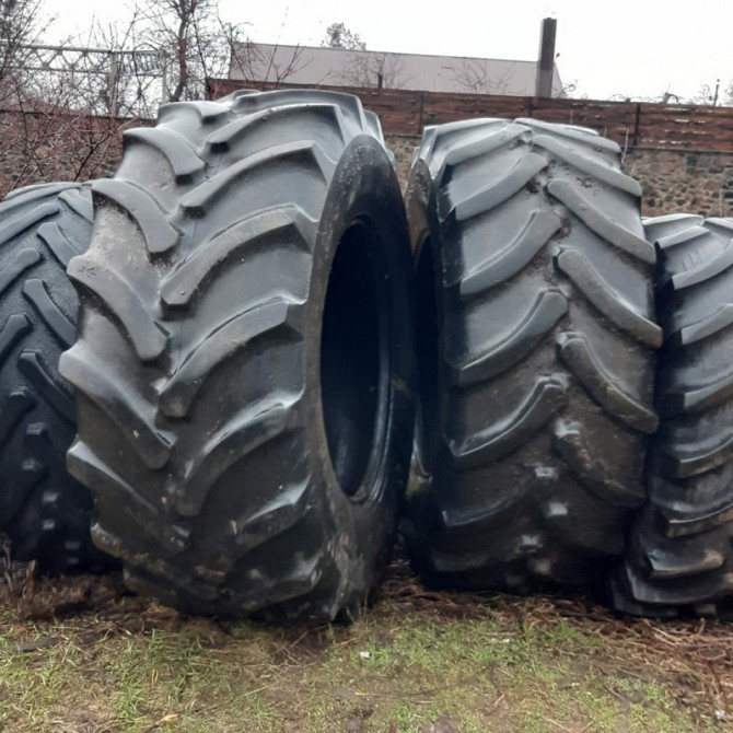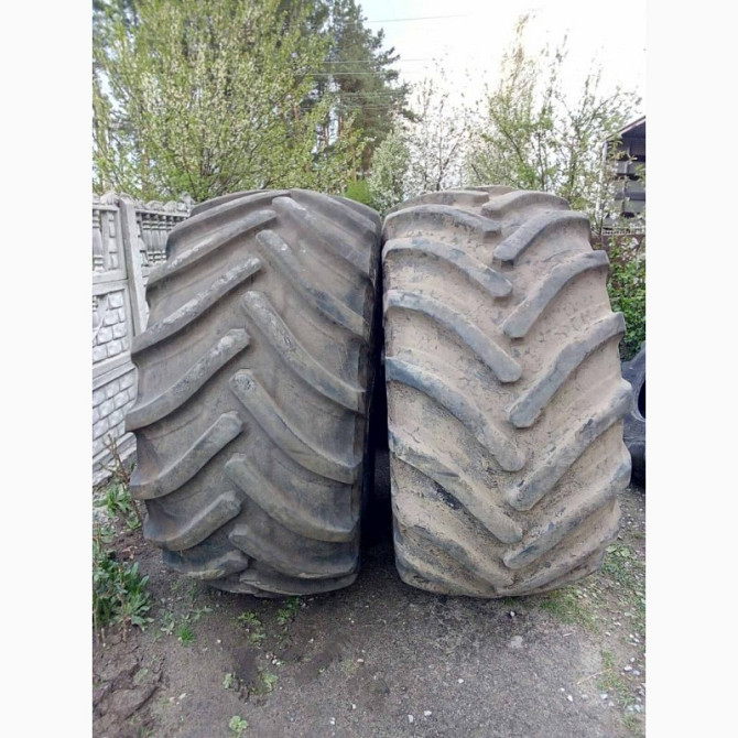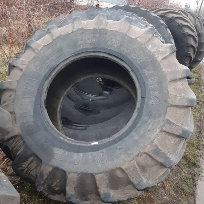 Шини Michelin 650/75R32 (24.5R32) В Наявності: 2 шт. Технічні характеристики: - Типорозмір: 24.5-32 - Призначення: для передніх коліс комбайнів Клас, Нива, Джон Дір, Кейс - Стан: відмінний, з ремонтом на ходовій частині внаслідок проколу від шипа (як видно на фото) - Використання: підходить для щод...