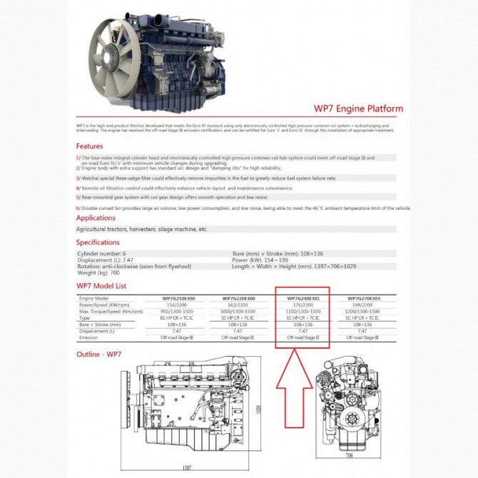 Потужність (к.с.): 250Напрацювання (м.ч.): 8065Двигун: 8,1л (6 циліндрів)Коробка передач: PowerShiftШестерні: 16 вперед і 4 назад