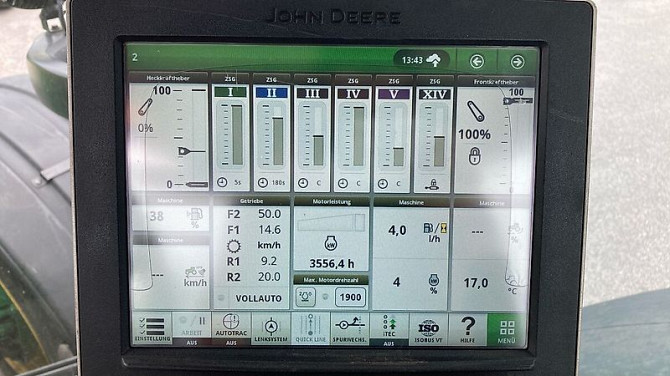 John Deere 8370R 2016 рік.Трактор John Deere8370RРік: 2016Напрацювання: 3258 м/рікДвигун: John Deere Power Tech, 9 л. 6 ц. (370 к.с.)Трансмісія: AutoPowr (IVT) 50 км/годПідвіска кабіни: ГідравлічнаКабіна з кондиціонеромКонсоль CommandARM™Сидіння з пневматичною підвіскоюCommandCenter 4600 чіпкаЗадня ...