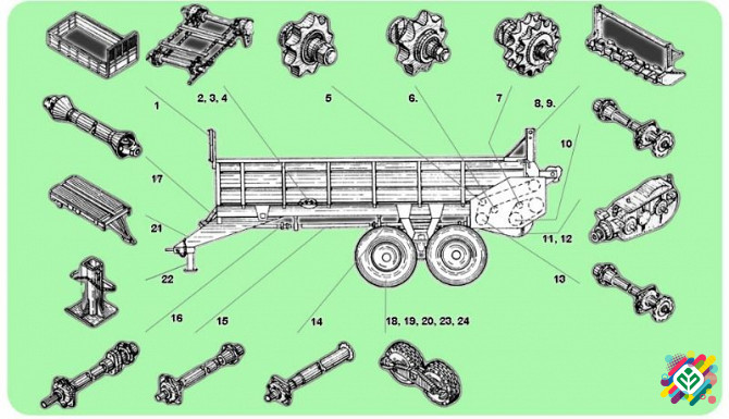 **Запчастини для розкидувачів органічних добрив РОУ-6, ПРТ-7, ПРТ-10: технічний опис** У нашому асортименті завжди в наявності запчастини для розкидувачів органічних добрив моделей РОУ-6, ПРТ-7, ПРТ-10. Надаємо зірочки ведучі, натяжні, ведені та подвійні, а також інші необхідні комплектуючі: - біт...