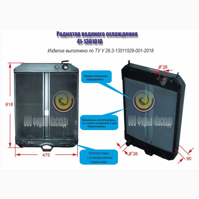 Водяний радіатор 41-1301010 виготовлений ТОВ фірма "Каскад" є аналогом радіатора 41-1301010, широко використовуваним у легкових автомобілях та спецтехніці. Наше виробництво використовує мідно-латунне серцевину та колектори зі сталі. Технічні параметри розроблені згідно з ТУ У 29.3-13511529-001-2018 ...