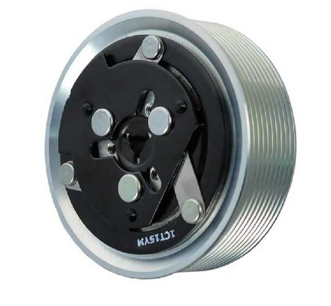Муфта компрессора кондиціонера DENSO 146 мм 8 ручків 12 В: шкив + прижимна пластина + електромагніт Характеристики: - OEM: AT1211063 - Опис: Муфта в зборі / DENSO 12V 8 GRV 145 мм - Напруга: 12 В - Кількість ручків: 8 - Тип ременя: полікліновий - Діаметр (дюйми): 5-11/16” - Діаметр (мм): 145 мм - В...