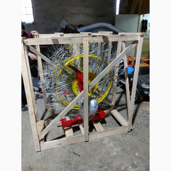 ### Технічний Опис: Колесо Грабарки з Оцинкованою Проволкою 6 мм Колесо грабарки з оцинкованою проволокою довжиною 120 см призначене для використання у господарствах та садівництві для збору скошеної трави, листя та інших сільськогосподарських відходів. Виготовлене з високоякісних матеріалів, колес...