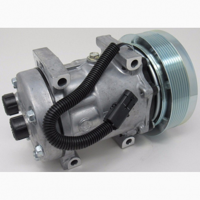 Компресор кондиціонера для сільськогосподарської техніки New Holland 7H15 U4768 Характеристики продукту: - Тип холодильного газу: R134a - Тип масла: PAG - Вага: 8,0 кг - Максимальна кількість обертів (об/хв): 7000 - Шкив полікліновий: 8{PV - Діаметр шкива: 152 мм - Напруга: 12 В - Підключення: гори...