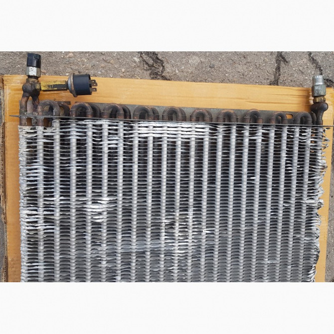 Радіатор кондиціонера вживаний, призначений для використання в комбайнах Дон, Славутич, Енісей та Палесье, а також тракторах ХТЗ. Габаритні розміри становлять 565x570x45 мм. Розмір шагу ламелей - 6 мм. Вхідний отвір має розмір 3/4-16UNF (O-кільце), вихідний - 5/8-18 UNF (O-кільце). Матеріал виготовл...