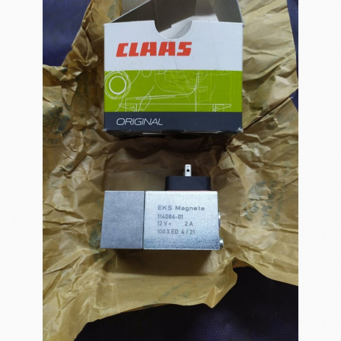 Клапан магнітний 071329 Claas EKS magnete 114084-01 Застосування: Клапан магнітний 071329 Claas використовується як запчастина для гідравлічної системи жниварських комбайнів Claas. Призначення: Цей клапан виконує функцію керуючого елемента гідророзподільника, що забезпечує оптимальну роботу гідрав...