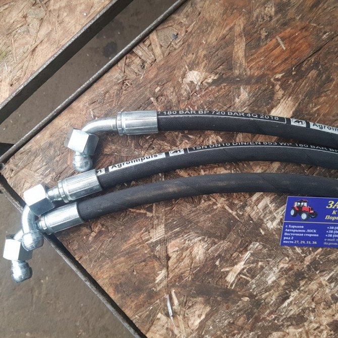 Рукав високого тиску РВД S24 (М20 х 1,5) L-1,0 м з кутом 90 градусів (Н.036.83 (тиск-160 МПа)) інших систем у сільськогосподарській, комунальній, спеціальній техніці. Гідравлічні шланги мають армування у вигляді двох еластичних металевих оплеток.