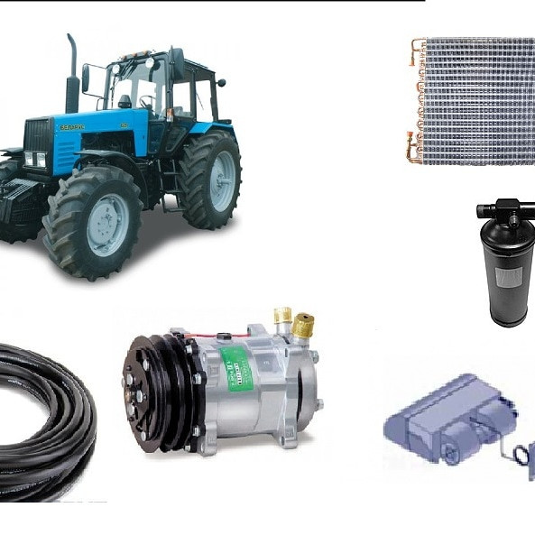 Комплект кондиціонера для трактора МТЗ всіх модифікацій з двигуном Д243-Д245: Компресор Sanden 5Н14 шків А2 або аналог SC5H14: з вертикальним розташуванням штуцерів вихід-3/4-16UNF(O-ring) вхід-7/8-14UNF(O-ring) Робочі обороти - 700-6000 об/хв; Кількість циліндрів - 5 шт.; Олія PAG-100 - 150 мл; Спо...