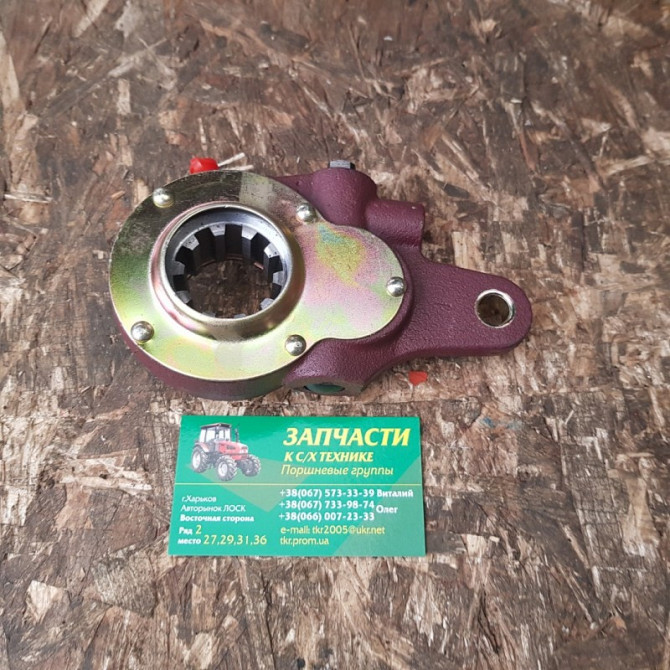 Важіль регулювальний 120-3501136 у зборі, тріскачка, провідного тракторного мосту колісних тракторів виробництва ХТЗ, Т-151, Т-156, Т-17221, Т-17021, Т-157, Т-150-05-09-25. У корпусі важеля знаходиться черв'ячне зубчасте колесо, встановлене на валу розтискного кулака, і черв'як із запресованою в ньо...