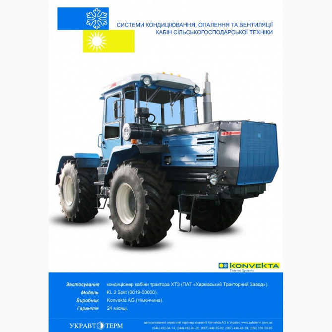 Модель: KL 2 SplitЗастосування: кондиціонер кабіни на трактори ХТЗ (Мінський тракторний завод) - весь модельний ряд. http://avtoterm.com.ua. Відділ продаж: (044) 492-04-14, 492-04-20, 067-440-46-30Технічні характеристики:Тип фреону R134aНапруга 12V Потужність охолодження 6000 ВтПотужність опалення 6...