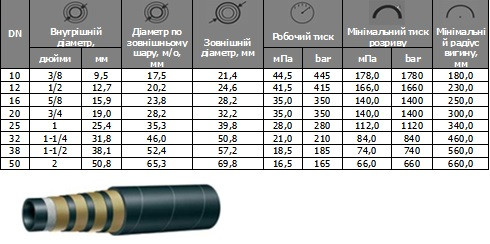 Рукав високого тиску 2SN12(1/2”)Рукав високого тиску з двома металевими обплетеннями 2SN12(1/2”)Стандарт: DIN/EN 853Внутрішній шар: Маслостійкий синтетичний каучукЗміцнюючий шар: 2 кулі металевого обплетення мм: 12,7Зовнішній діаметр,мм: 22,2 Робочий тиск, Bar: 275Давление розриву, Bar:1100Радіус ви...