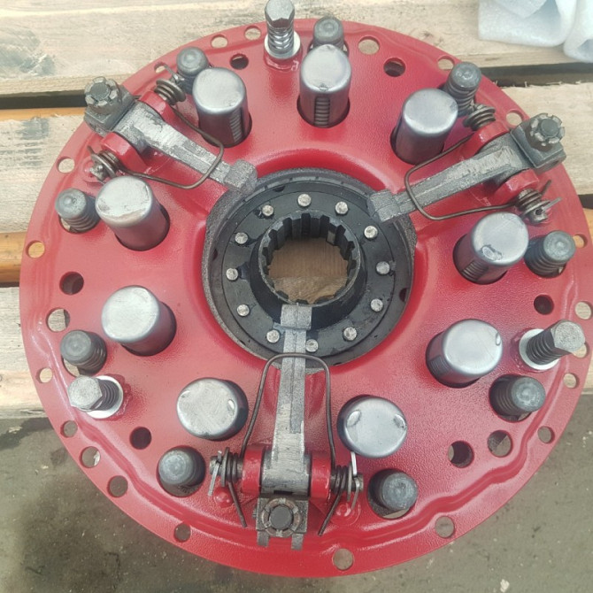 Корзина зчеплення трактора ЮМЗ з двигуном Д-65 Корзина зчеплення ЮМЗ призначена для тимчасового від'єднання колінчастого вала дизеля та ведучого вала коробки передач з метою безударного перемикання передачі та перевантажень дизеля. Каталожний номер деталі: 45-1604080. У наявності також є ремкомплек...
