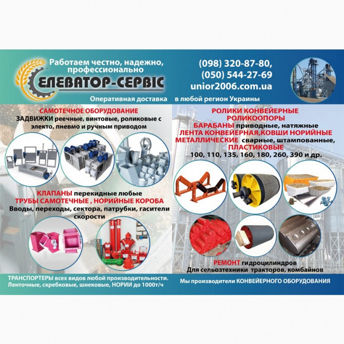 У нас Ви зможете купити ковшові зернові норії потрібної Вам висоти продуктивністю від 5 до 800 т/год. Виготовимо стрічкові та скребкові конвеєри, різне конвеєрне та елеваторне обладнання, шківи багаторучкові, зірочки ланцюгової передачі, муфти; до 2000мм, різні комплектуючі