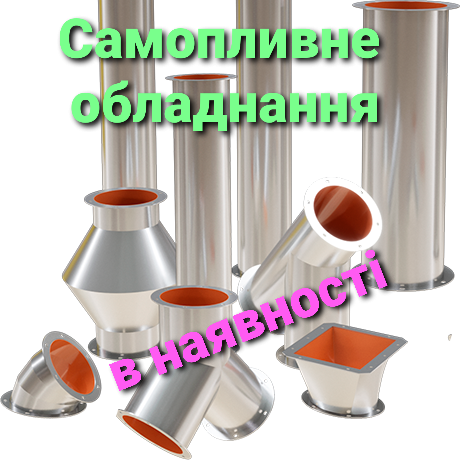 Самопливне обладнання можна купити в нас вводи і переходи; засувки; самопливні труби; сектори; клапани перекидні; гасники швидкості; норії та комплектуючі.