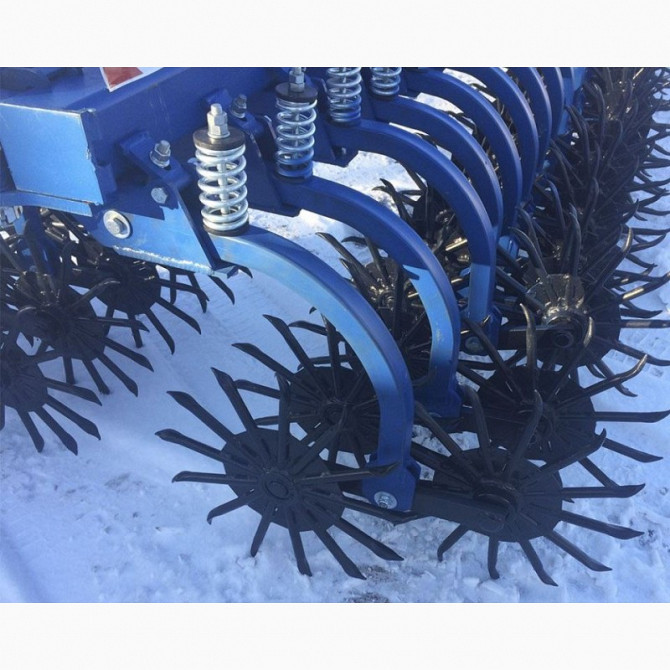 Робочий орган комплектується дисками із шипами у вигляді лопатки, шириною 25мм. Кількість шипів 13. У кожному диску стояти по два підшипники 6205 закритих металевими кришками (фірма виробник ZKL Чехія). Підшипниковий узел обслуговується, добре промазується внутрішньо. Ресурс від 2000 Га. Стійка ціль...