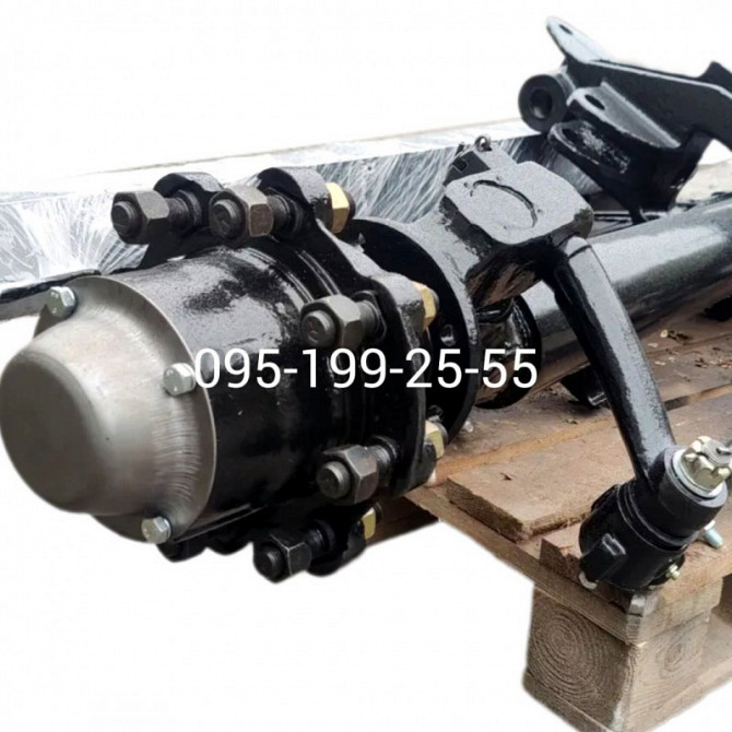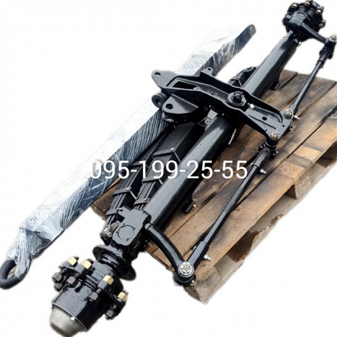 Ходова частина, балка (вісь) у зборі, ресора, маточина колеса, дишло - причепа тракторного 2ПТС-4, кормороздавача КТУ-10.