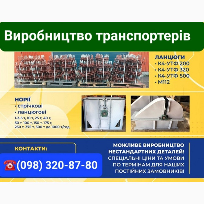 Труби сталеві, відгалуження, сектори, коліна СК, вводи СВО, СВД, СВС, трубки для самотікання: це обладнання призначене для транспортування зерна по зернових трубопроводах. Ковші для норій: УКЗ-0,20,50,100,175. Метизи: болти М8х32 (10*40), гайки М8 (М10), кульові шайби. Ковші для норій: УКЗ-0,20,50,...