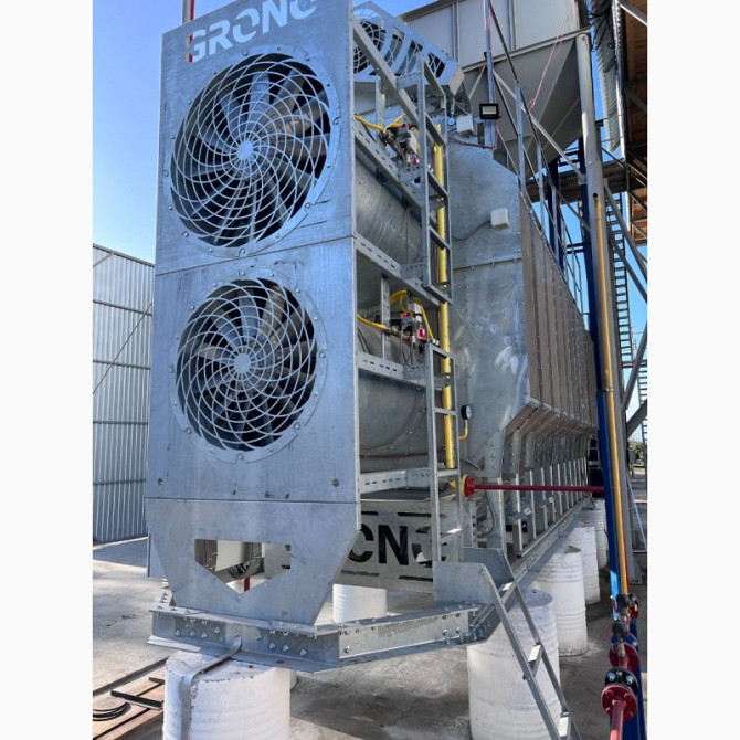 Зерносушарка GRONO двохмодульна 400 тонн на добу Зерносушарка GRONO компанії "Агротепло груп" є двохмодульною зерносушаркою з продуктивністю 400 тонн на добу. Розхід природнього газу для видалення 1 тонни вологості складає 1,55 м³/год. Продуктивність зерносушарки для охолодженого зерна кукурудзи пр...