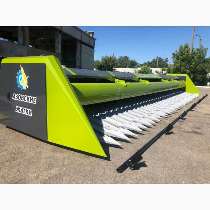 **Подсолнечные жатки для уборки урожая: технічний опис** Підприємство "Азовські жатки" пропонує вам жатку для уборки подсолнечника моделі ЖНС-4м-12м з доставкою безпосередньо до вашого господарства. Технічні характеристики: - Довжина жатки: 12 метрів - Жатка успішно агрегатується з комбайнами будь...