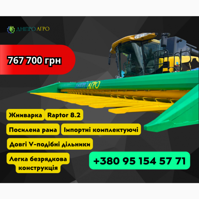 **Технічний опис жниварки для збирання соняшника «Raptor» від «Дніпро Агро»** Жниварка для збирання соняшника «Raptor» від «Дніпро Агро» є інноваційним рішенням, спеціально розробленим для досягнення високої продуктивності та якісного процесу збирання соняшника. **Технічні характеристики:** - Шири...