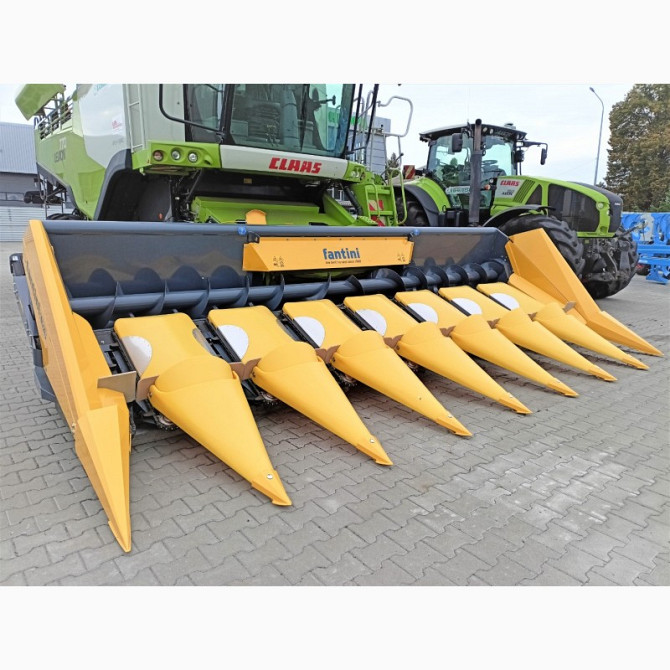 **Жниварка Fantini для збирання кукурудзи: Технічний Опис** **Характеристики:** - Кількість рядків: 8 шт - Міжряддя: 70 см - Ширина захвату: 5,6 м - Рама: жорстка - Привід жатки: двосторонній - Подрібнювач стебел: в наявності - Притискач стебел перед шинамикомбайна Жниварка Fantini є ідеальним виб...
