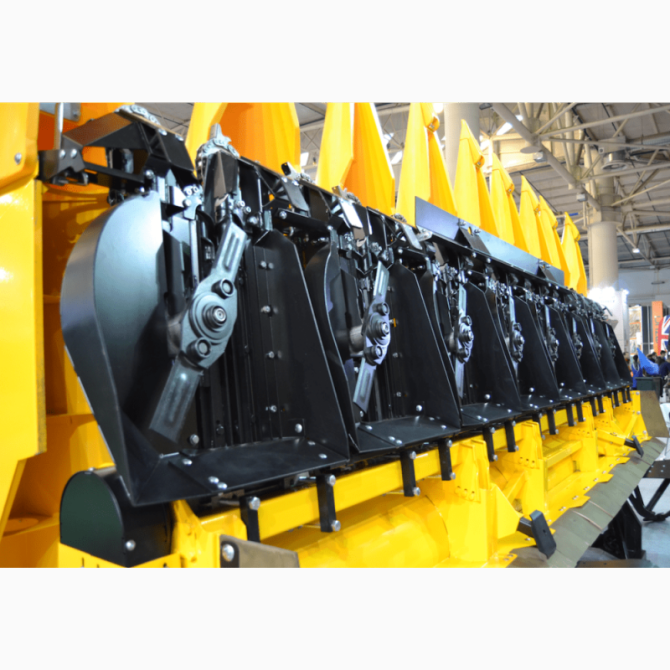 М'яке захоплення кошиків соняшнику Механічні дільники-підйомники, здатні захоплювати по два кошики на борозну, відіграють важливу роль у процесі збирання соняшнику. Вони мають дуже гострий кут наконечника, що дозволяє ніжно проникати між рослинами без ризику пошкодження насіння або кошиків соняшник...