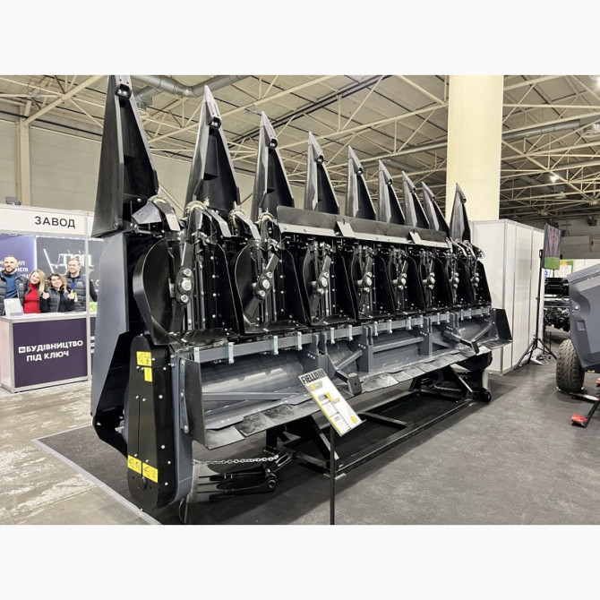 **Жниварка кукурудзяна 8-ми рядкова** **Призначення:** Жниварка кукурудзяна 8-ми рядкова призначена для ефективного збирання качанів кукурудзи та подрібнення стебла під час жнив. **Технічні характеристики:** - Жниварка FIELLDAY забезпечує збір кукурудзяного врожаю з подальшим обмолотом качанів, п...
