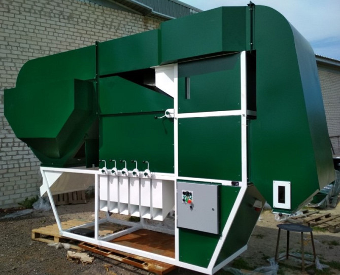 Імпелерна сепаруюча машина для очищення та калібрування зерна. Характеристики при роботі з пшеницею: - Очистка: до 5 тонн на годину - Калібрування: до 3 тонн на годину Продуктивність для інших видів зерна може бути меншою, залежно від виду зерна та його засміченості. Робота машини полягає у змін...