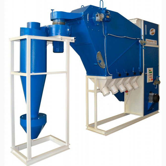 Сепаратор САД-50 з циклоном **Технічні характеристики:** - Продуктивність: - на попередній очистці - до 60 т/год - на першій очистці - до 50 т/год - на калібруванні (сортуванні) - до 20 т/год - Споживана потужність: 19,8 кВт - Габарити: - Довжина - 4550 мм - Ширина - 1700 мм - Висота - ...