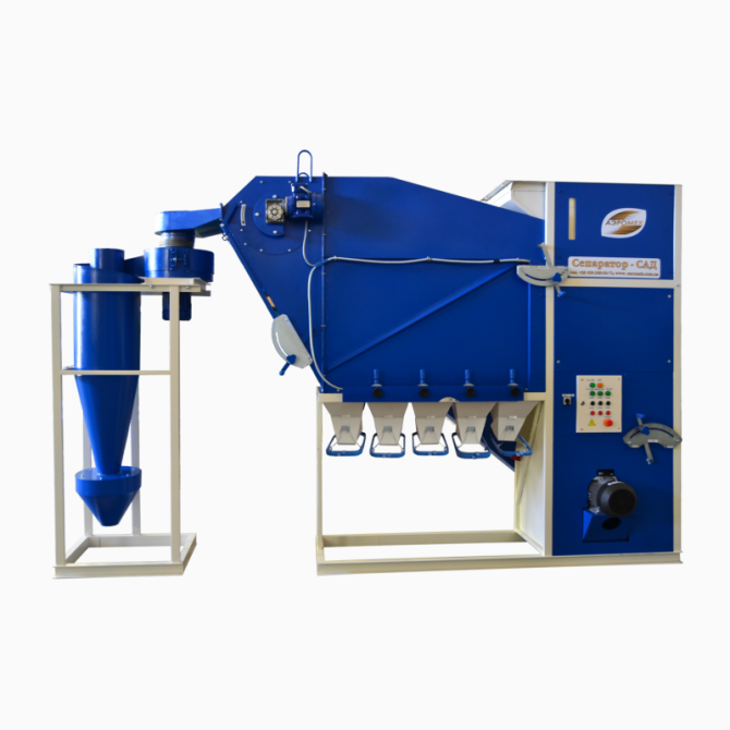 Сепаратор САД-15 з циклоном: технічний опис Сепаратор САД-15 є малогабаритним устаткуванням з високою продуктивністю, призначеним для використання на господарствах площею від 1000 до 2000 гектарів, а також на переробних підприємствах, з можливістю обробки до 15 тонн зерна на годину. Основні функц...