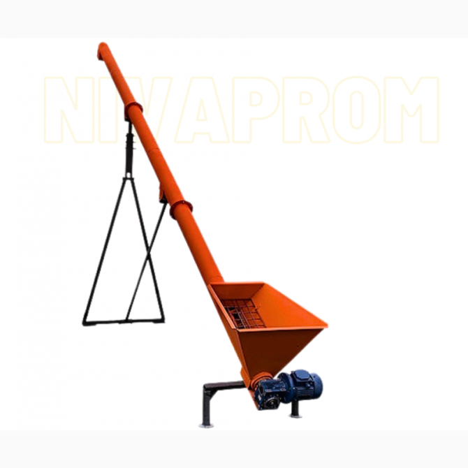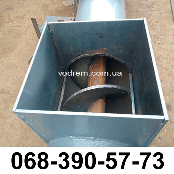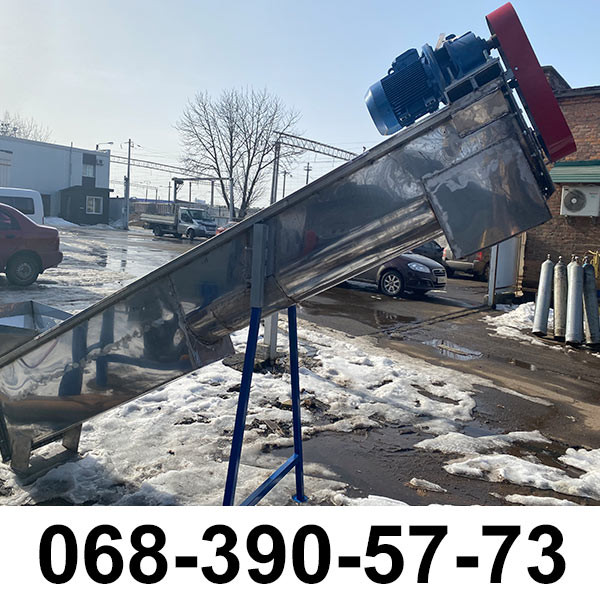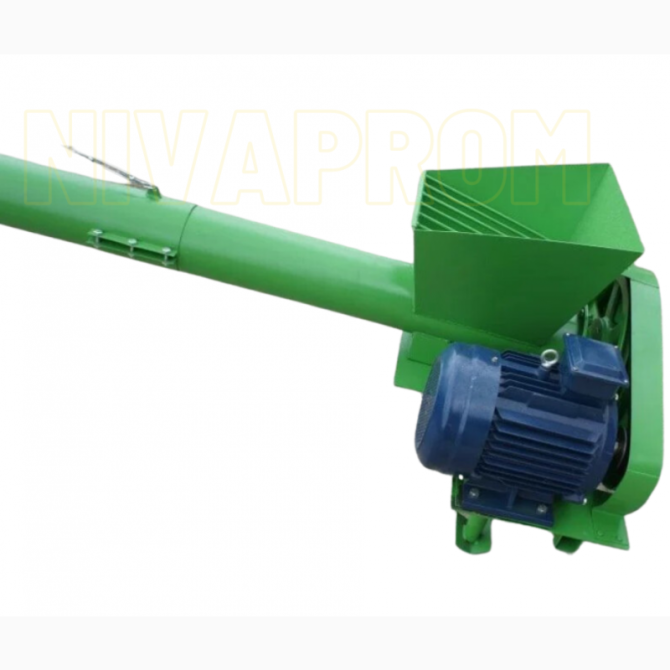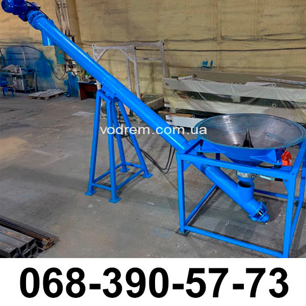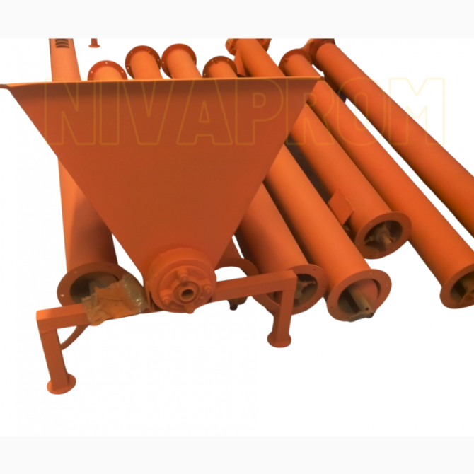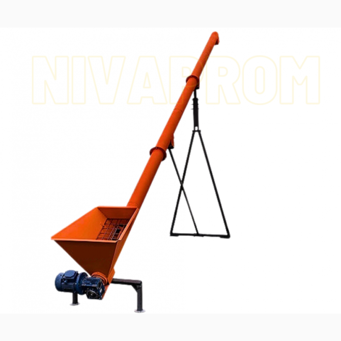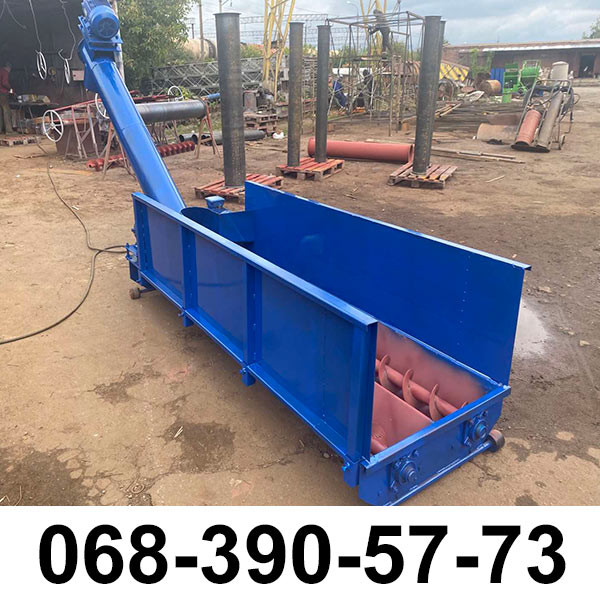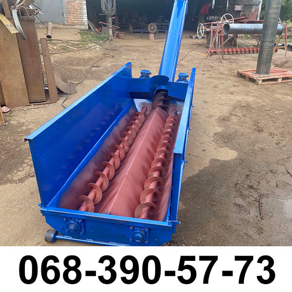 Шнековий транспортер з бункером Шнекові транспортери призначені для перевезення зерна та подібних за характеристиками матеріалів (комбікорму, відрубів та інших) по горизонтальних або нахилених напрямках. Переміщення продукту відбувається в закритому жолобі шнекового транспортера вздовж осі спіральн...