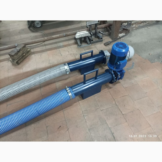 Гнучкий (спіральний) шнек призначений для транспортування зерна, бобових та інших сипучих і гранульованих матеріалів. Цей шнек ідеально підходить для використання в обмежених просторах та по складних траєкторіях. **Технічні характеристики:** - Продуктивність по зерну: - Діаметр 76 мм: до 800 кг...