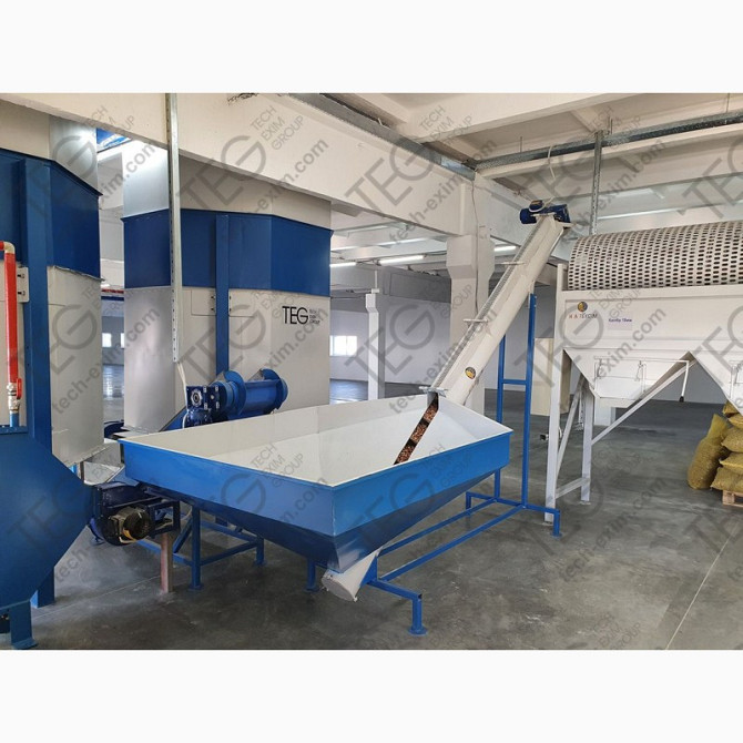 **Технічний опис шнека загрузки горіхів КПГ/2** Шнековий конвеєр призначений для автоматичної загрузки грецького горіха, фундука, каштанів та інших схожих продуктів у бункер машини для калібрування, миття та інших процесів обробки. Цей тип обладнання відіграє важливу роль у виробничому процесі, заб...