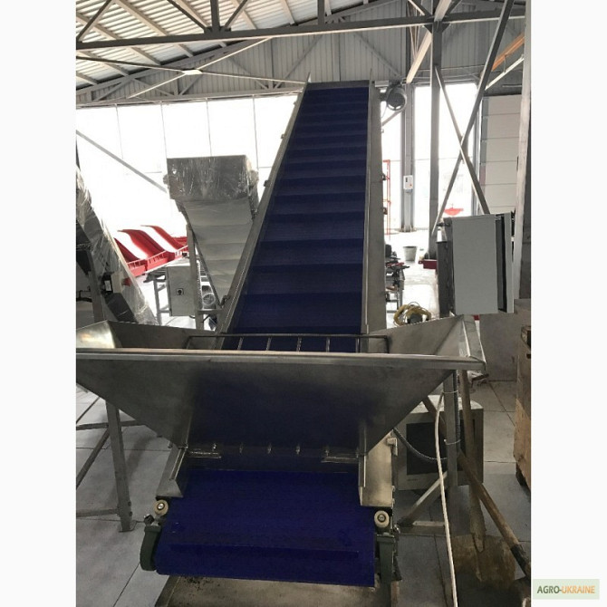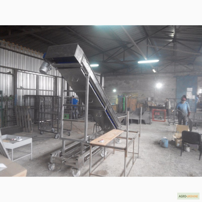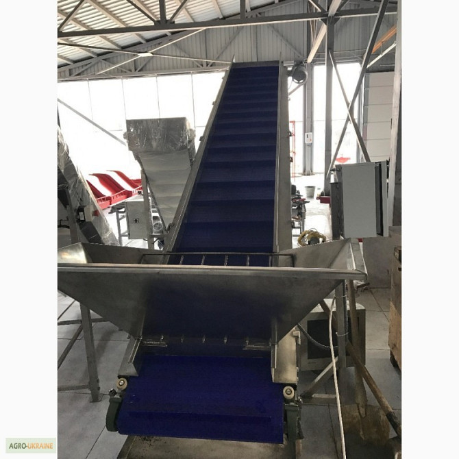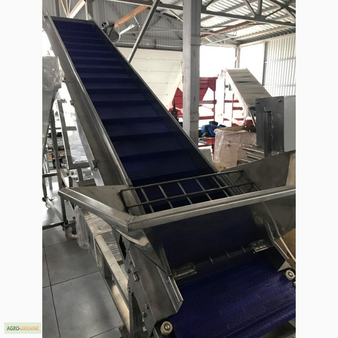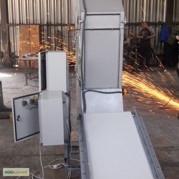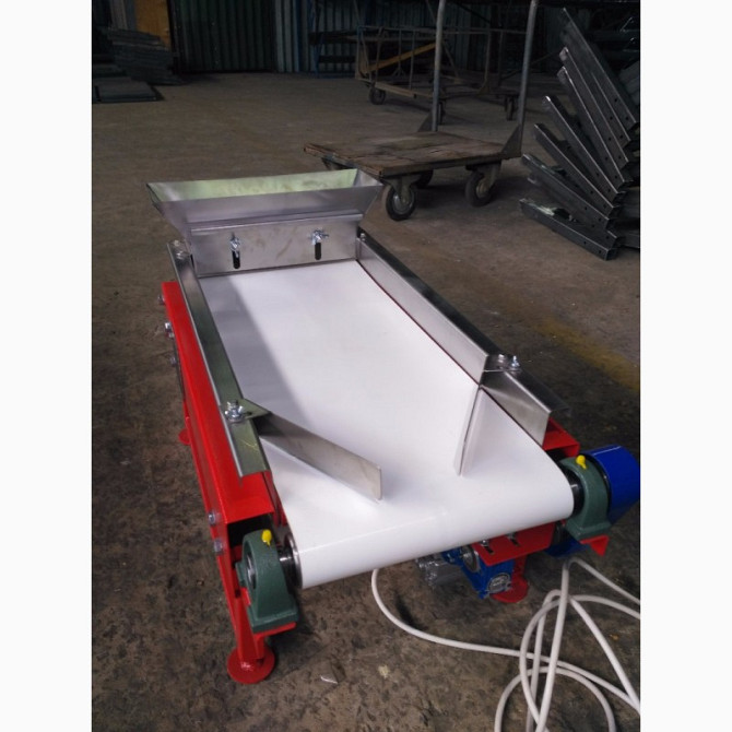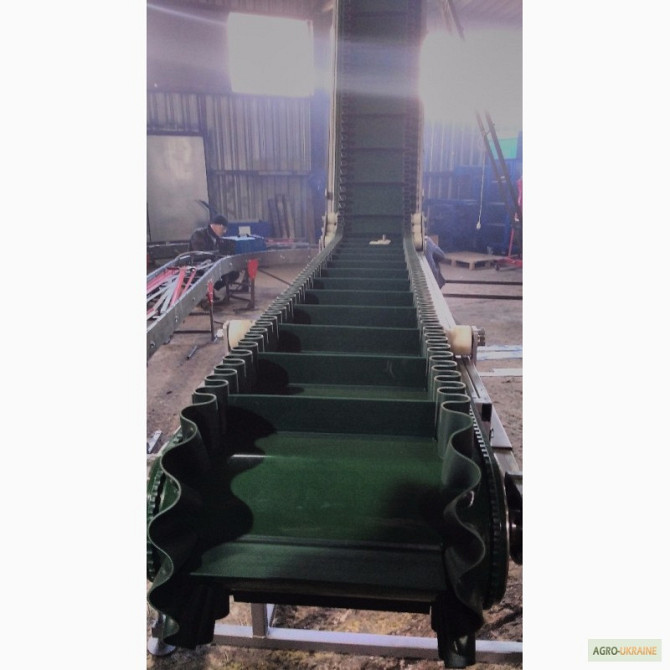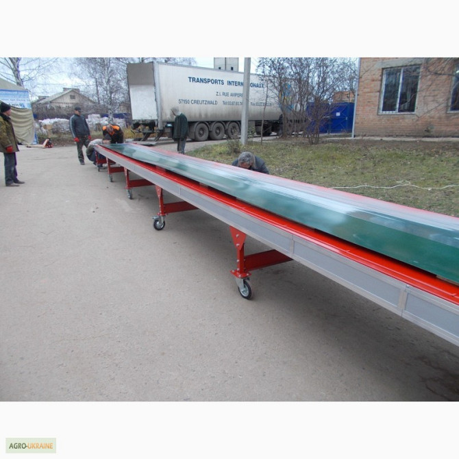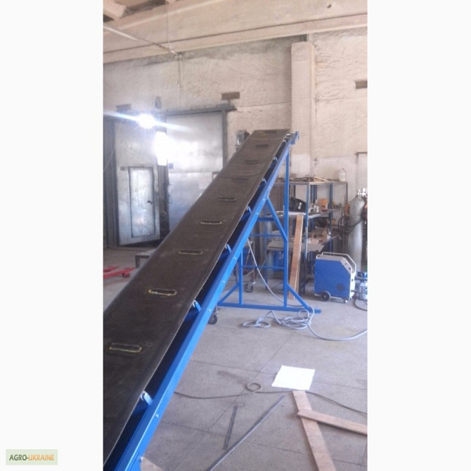 Продається транспортер призначений для перевезення мішків. Продуктивність - 1800 мішків на годину. Є варіанти моделей завдовжки 8,8 м і 10 м. **Технічні характеристики жолобчастого конвеєра завдовжки 8,8 м:** 1. Тип: ленточний 2. Ширина ленти: 700 мм 3. Швидкість ленти: 0,5 м/с 4. Максимальне наван...