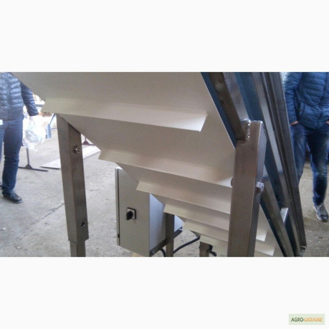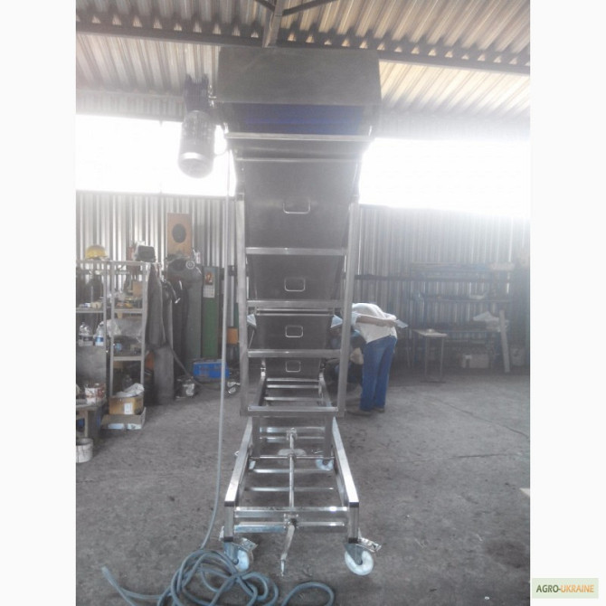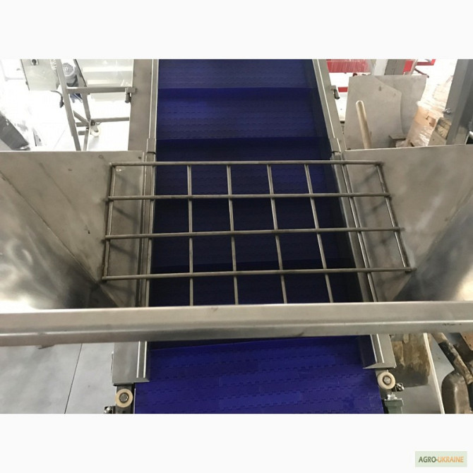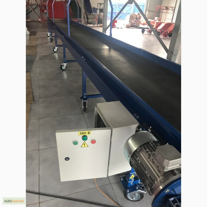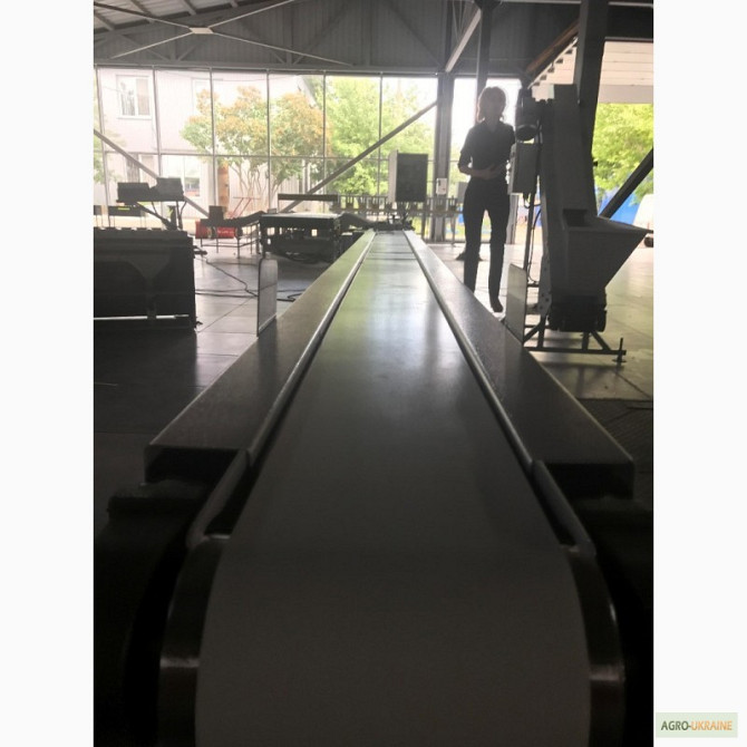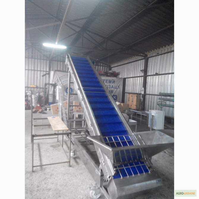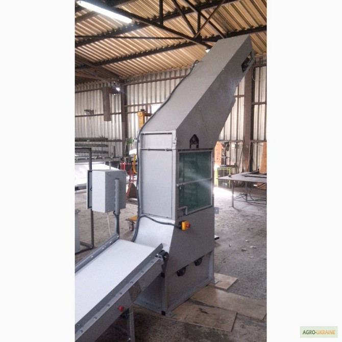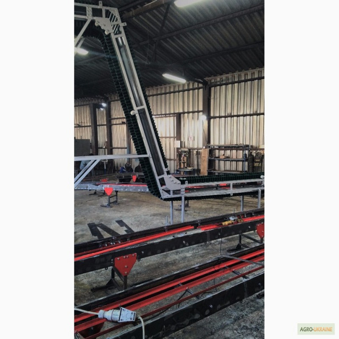 Продається транспортер призначений для перевезення мішків. Продуктивність - 1800 мішків на годину. Є варіанти моделей завдовжки 8,8 м і 10 м. **Технічні характеристики жолобчастого конвеєра завдовжки 8,8 м:** 1. Тип: ленточний 2. Ширина ленти: 700 мм 3. Швидкість ленти: 0,5 м/с 4. Максимальне наван...