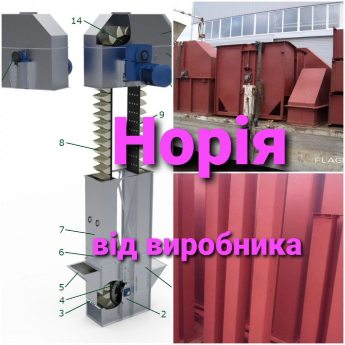 Виробництво ковшових стрічкових і ланцюгових елеваторів Норія ковшова ленточна і ланцюгова - це технічне обладнання, яке використовується для транспортування різних матеріалів у вертикальному або нахилениму положенні. Норії виготовляються в різних модифікаціях, таких як ЛГ-100, ЛГ-160, ЛГ-200, ЛГ-2...
