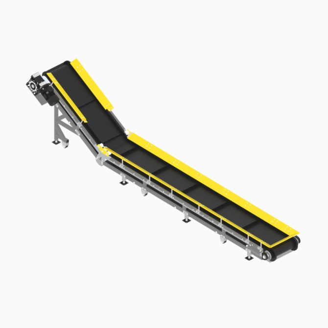З-подібний конвеєр є типом похилого конвеєра з горизонтальними завантажувальними та розвантажувальними ділянками, призначений для транспортування виробів. Цей тип конвеєра часто використовує шеврони для підйому вантажу на певну висоту та для запобігання його зсуванню. Висота, крок та форма поперечно...