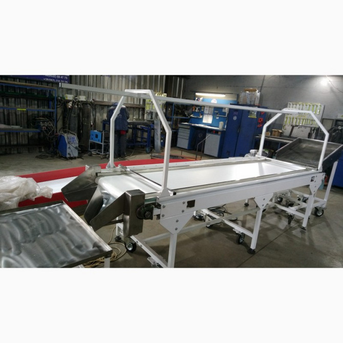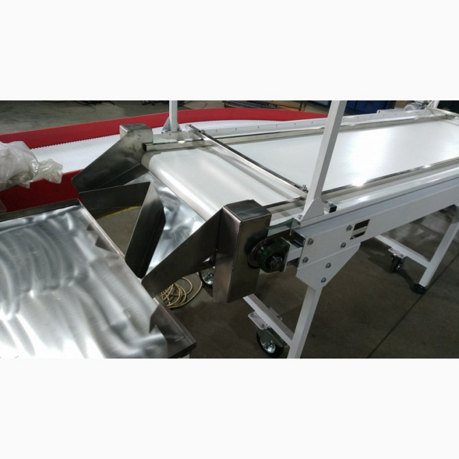 Горизонтальний ленточний конвейер для ручного сортування їжі та неїжі продуктів є передовим обладнанням у сфері харчової та нехарчової промисловості. Він має довжину 3500 мм та ширину ленти 800 мм. Висота конвейера може бути виготовлена на замовлення з можливістю регулювання. Робоча зона оснащена LE...