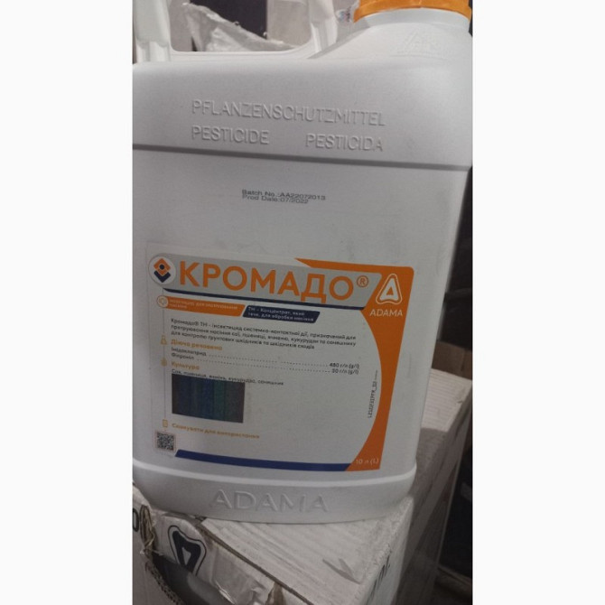 Протруйник Кромадо є універсальним засобом для ефективного захисту зернових культур, сої та кукурудзи від комплексу наземних і ґрунтових шкідників на стадії сходів. **Технічні характеристики:** - **Вміст діючих речовин:** фіпроніл - 50 г/л + імідаклоприд - 480 г/л - **Препаративна форма:** концент...
