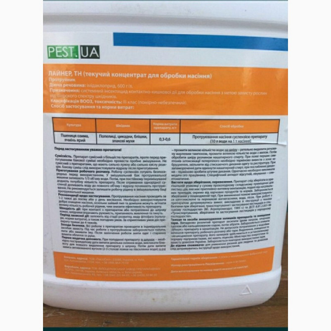 Протруйник Лайнер - системний інсектицид контактно-кишкової дії для обробки насіння з метою захисту рослин від широкого спектру шкідників. **Діюча речовина:** Імідаклоприд, 600 г/л **Формулювання:** Концентрат, який тече, для обробки насіння **Тара:** 5 л, ціна вказана за 1 л **Переваги:** - Шир...