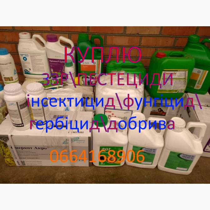 Куплю залишки агрохімікатів (гербіциди, фунгіциди, протруйники). Серед продуктів, які цікавлять: Тилмор, Табу, Тотрил, Танос, Таск Екстра, Фалькон, Хорус, Ширлан, Цитадель, Ламадор Про, Лонтрел, Майстер, Майстер Пауер, Моддус, Міура, Нурел-Д, Пропульс, Прима, Примаекстра Голд, Піктор, Рекс Дуо, Ридо...