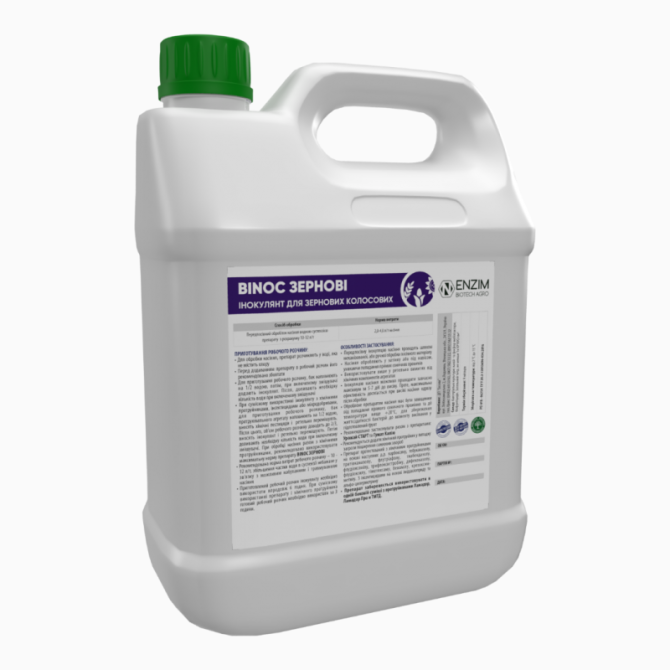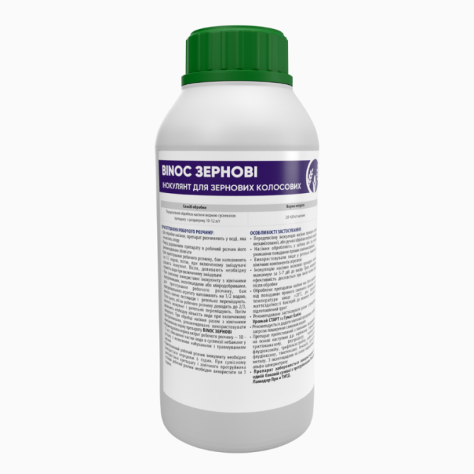 Binoc Зернові - комплексний інокулянт у рідкій формі для передпосівного обробітку насіння зернових та колосових культур, таких як пшениця, ячмінь, жито, гречка та інші, як ярих, так і озимих. Цей продукт призначений для забезпечення максимальної реалізації потенціалу культури. Склад препарату включ...