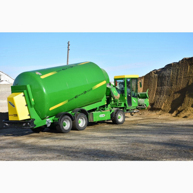 Рік випуску 2017Обьєм 14 м3Вертикальні шнеки 2шт 6 твердосплавних ножівОдна вісьНеобхідна потужність 80 к/сРоздача кормуна дві сторони