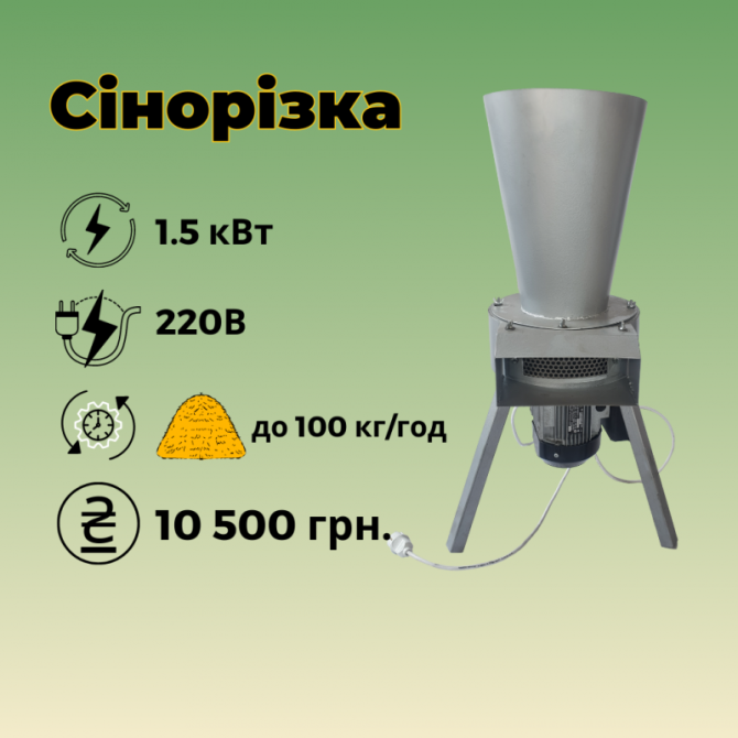 Сінорізка - Едвард 1.1 кВт є якісним апаратом, розробленим фахівцями компанії - ТОВ "МПСР", що гарантує його довговічну службу і гарантію 12 місяців.Призначена сінорізка для подрібнення сухої трави, сіна ісоломи. Підійде, як для маленьких домашніх господарств, так і для невеликих ферм.Товщина металу...