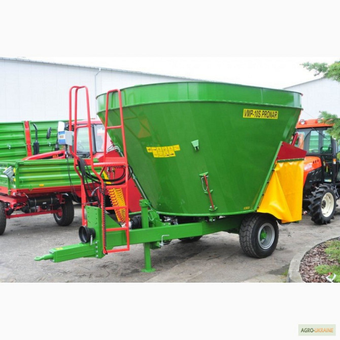 КормозмішувачPronar VMP-10 (Польща)Об’єм бункера 10м3, без верхньої надставки 8м3;Габарити (довжина/ширина/висота): 4860/2550/2670 (мм);Вантажопідйомність 4000 кг;Кількість ножів: 9 ріжучих на шнеку і 2 протиріжучі (для досягнення рівномірного подрібнення). Зроблені із хромо-ванадієво-вольфрамової с...