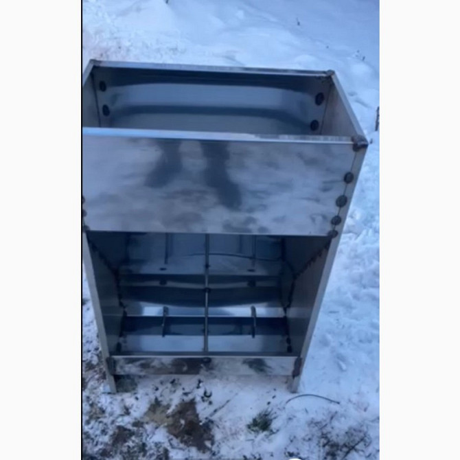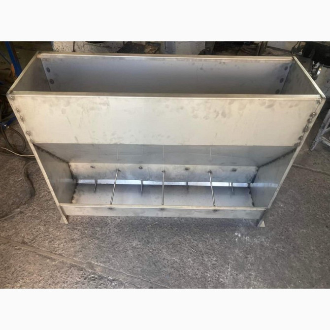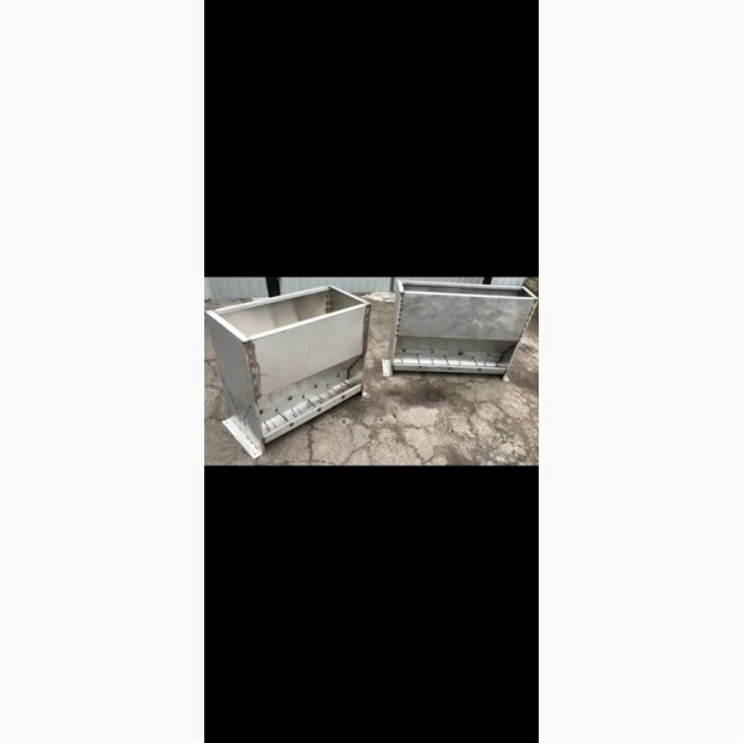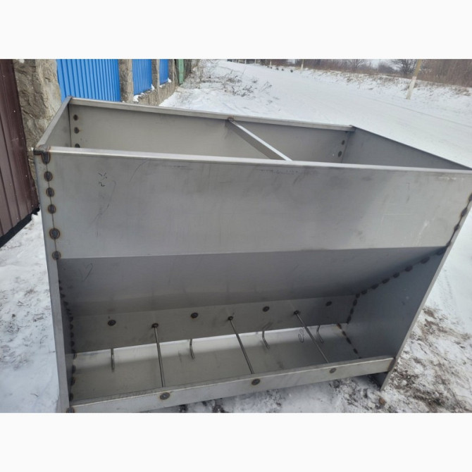 Годівниці на догодівлю виготовляються з високоякісної нержавіючої сталі типу А201 і представлені у двох варіантах: одностороння і двостороння, кожна з яких має 4 секції. Перша модель має об'єм 115 літрів та розміри 835×250×750 мм, розрахована на годування до 20 голів. Товщина металу може бути вибр...